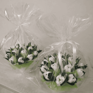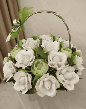 Во всех наших сладких, съедобных букетах из конфет присутствуют искусственные цветы, изготовленные из гофрированной бумаги, с вложенными внутрь их сладостями (Золотая лилия, Рафаэлло, Марсианка, Чупа Чупс, шоколада, батончиков) на деревянных шпажках по заказу клиента, которые, гармонично сочетаясь, превращаются в шикарный съедобный подарок для человека любого возраста.