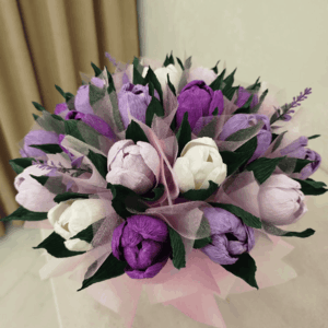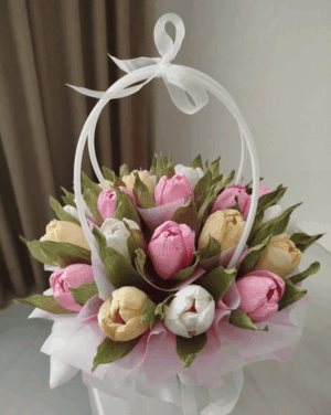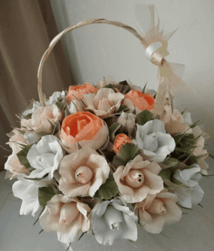 Букеты из рукотворных цветов в последнее время стали серьезными конкурентами, экстравагантным подарком и заменой обычным живым цветам. В сравнении с живыми цветами Вы можете любоваться ими долгое время, они не испортятся за пару дней, не завянут на следующее утро. Им не нужен уход и замена воды каждый день. После того как из них извлечь сладости аккуратно без повреждения бумаги, можно использовать для украшения интерьера, что многие и делают. А еще глядя на них вспомнятся воспоминания о веселом прошедшем празднике или серьезной памятной дате, к которой Вы не безразличны и когда-то весело отметили с друзьями.